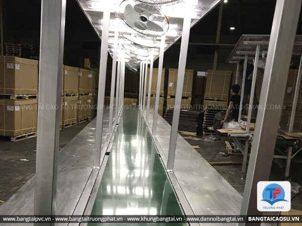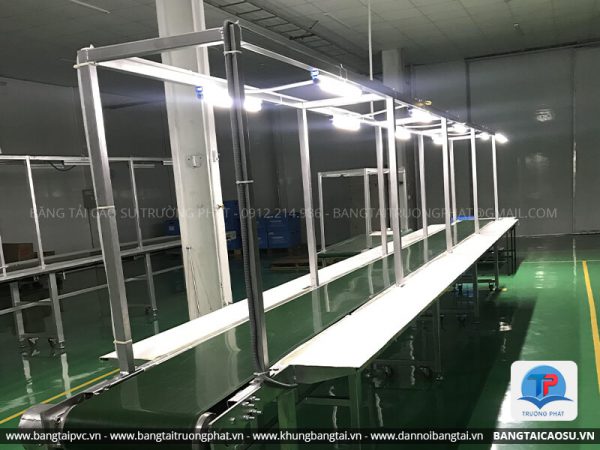 Khung băng tải PVC thường được dùng để di chuyển hàng hóa trong phân xưởng, Góp phần tạo nên một môi trường sản xuất năng động, khoa học và giải phóng sức lao động, tăng năng xuất, mang lại hiệu quả kinh tế cao.